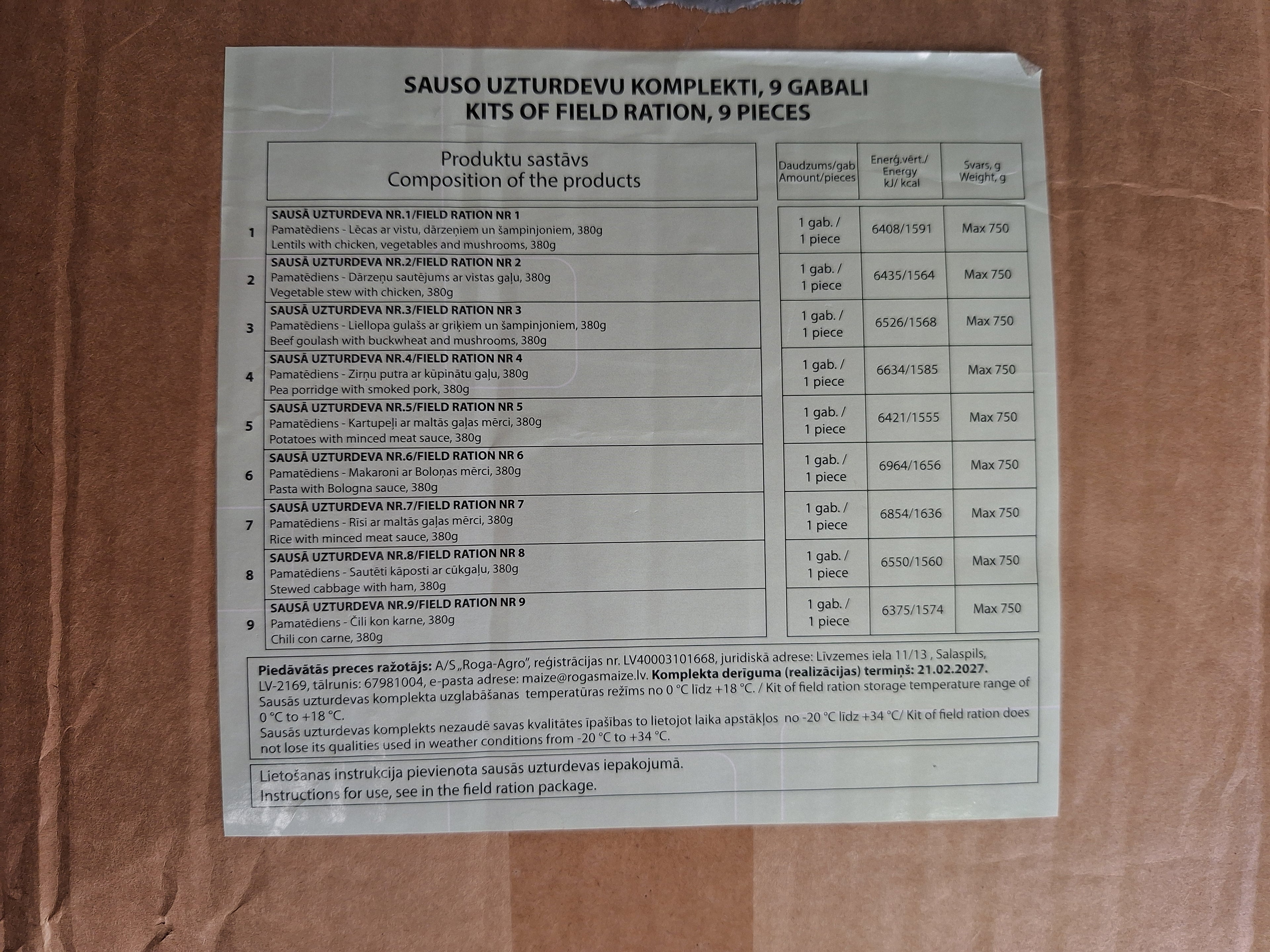 - 1× lettisk enkelmåltidsranson (menysammansättning beroende på parti)